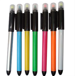 1.one side is ballpen,the other side is highlighter 2.you can choose body color and ink color